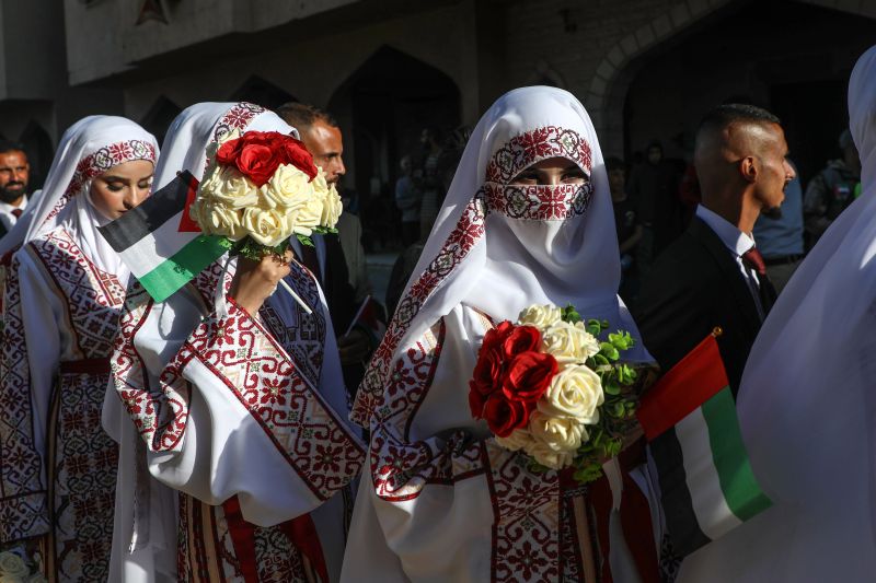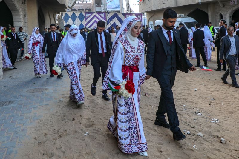 Mari intip suasana acara nikah massal di Khan Younis yang diabadikan dalam foto-foto berikut ini.